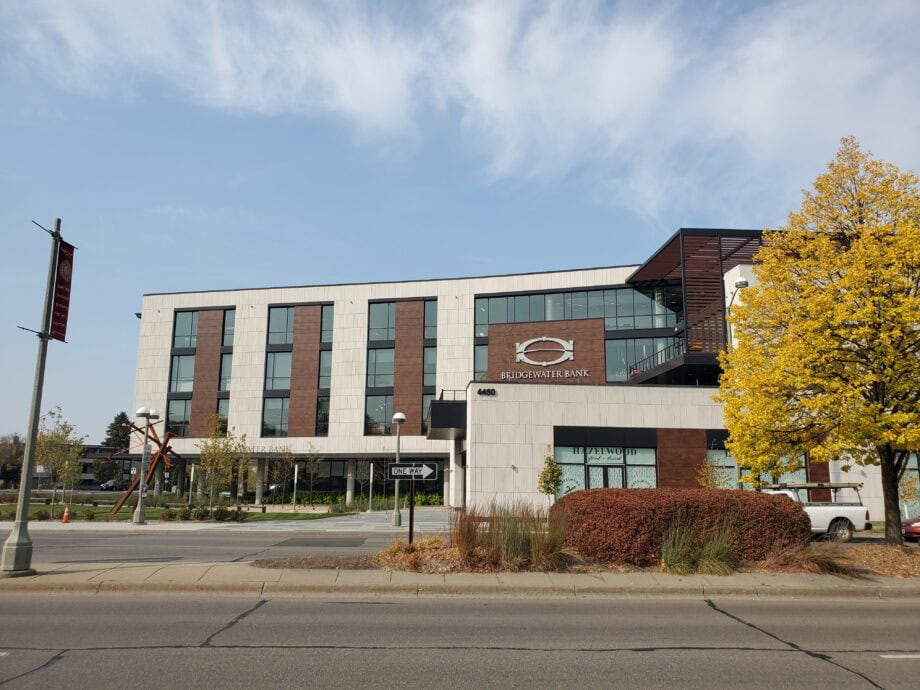 Back to GalleryBridgewater Bank St. Louis Park, MinnesotaThe Bridgewater Bank building in St Louis Park, Minnesota, is a four-story, 84,000 square foot mixed-use renovated office building serving as the bank’s headquarters and an entrepreneurial hub to provide job diversity to the area’s residents. The facility was transformed from a one-story building to a four-story regional landmark and was conceived on …