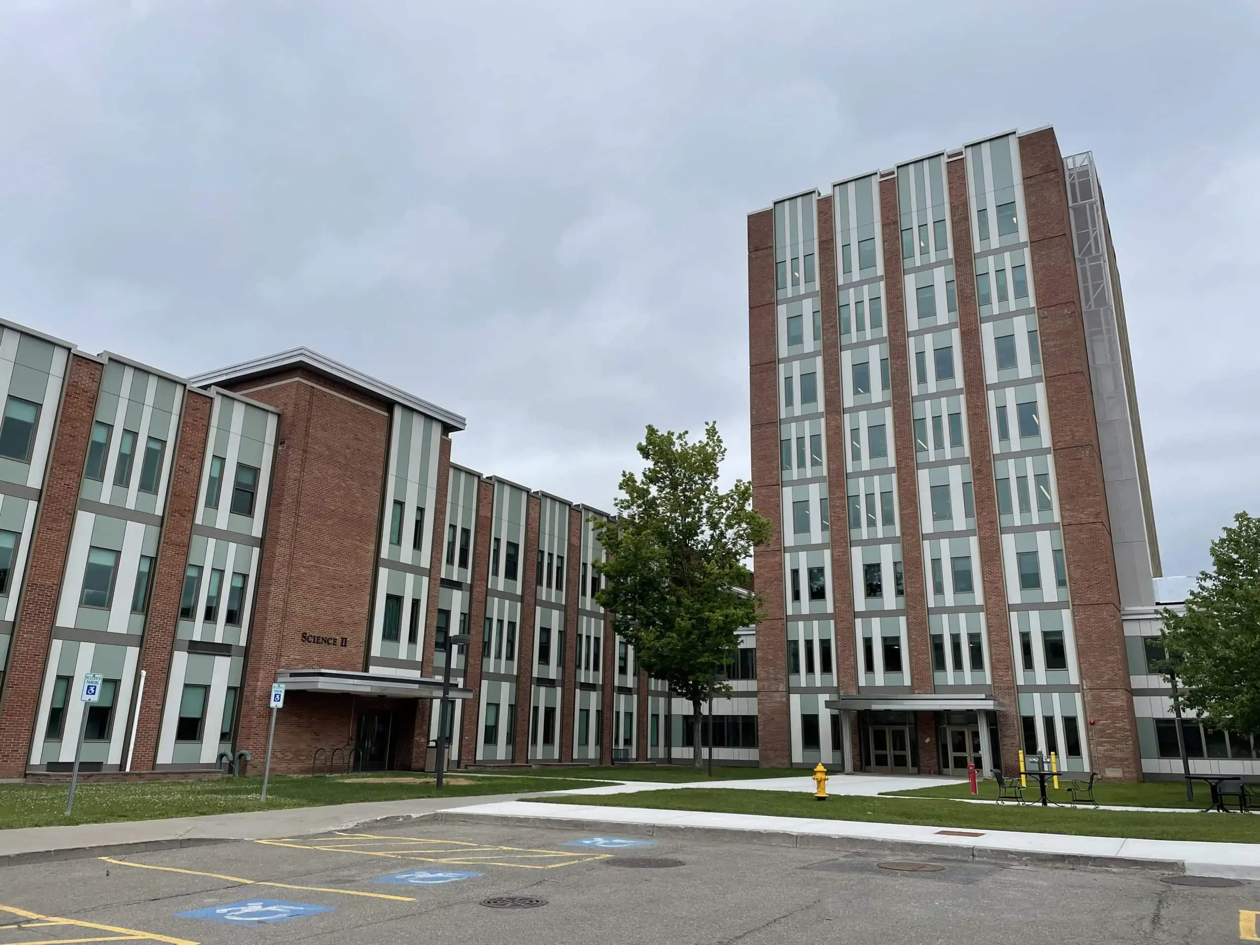 The SUNY Binghamton University Science II and III project was a rehabilitation of an existing three-tower structure. The original panels were removed and new framing, exterior insulation, and Fundermax panels were put in place.