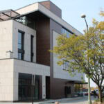 Choosing Fundermax also lends the building’s exterior additional protection. The impact, scratch, and weather resistance of the material offers superior durability against the region’s colder climates. The longevity and colorfastness of Max Compact panels also ensures the modern design will stand the test of time